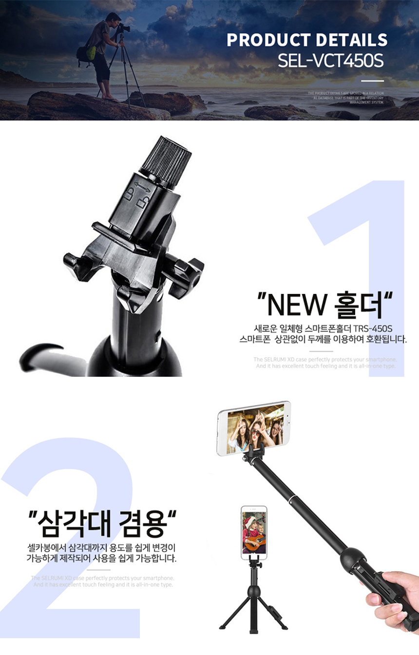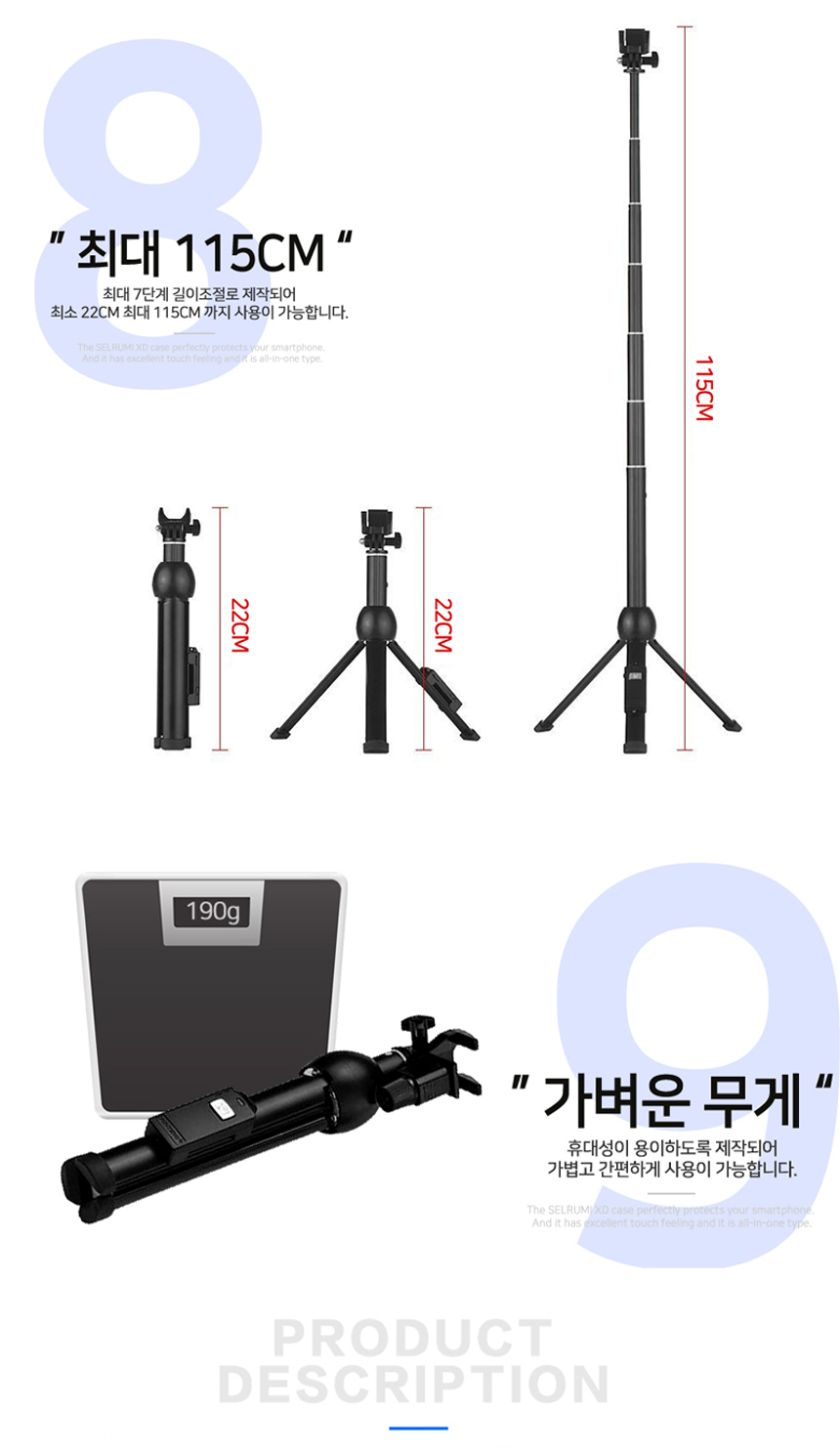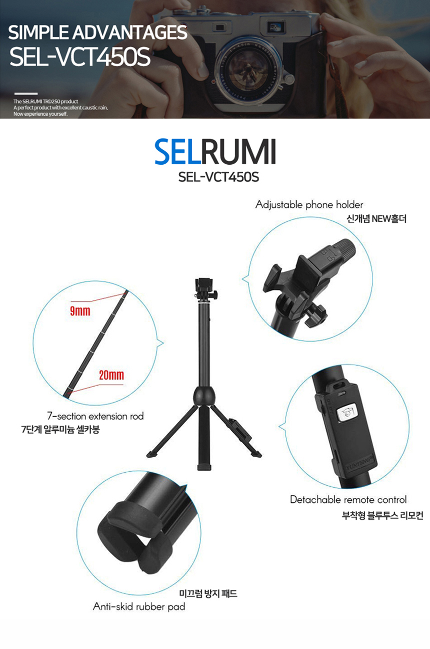 셀루미 두께고정 블루투스 셀카봉 삼각대