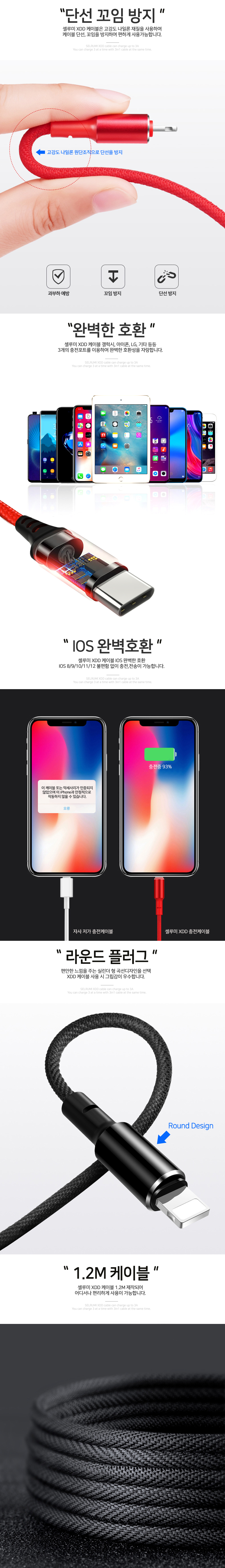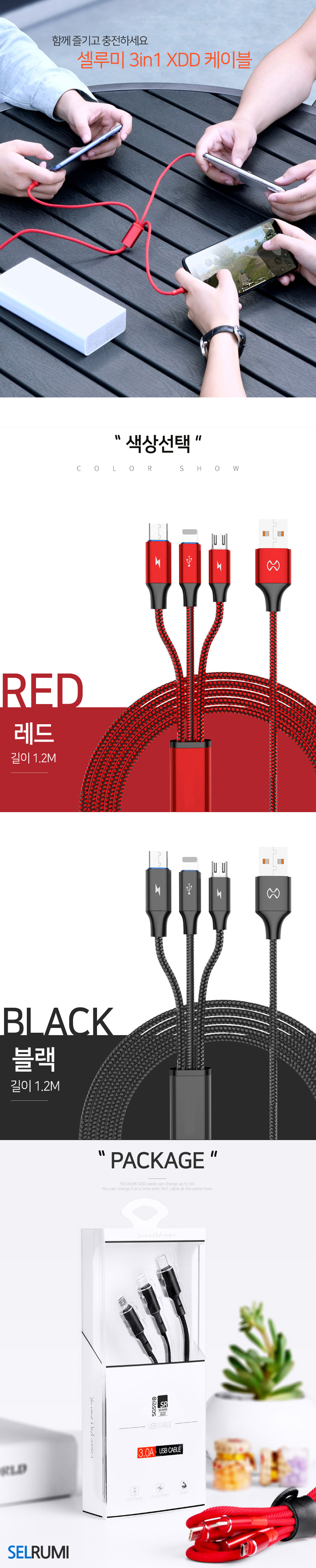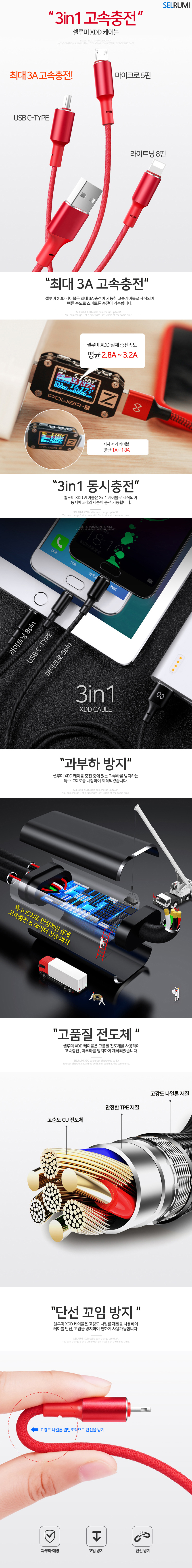 XDD 3in1 멀티 케이블 MAX 3A 고속 충전케이블 레드